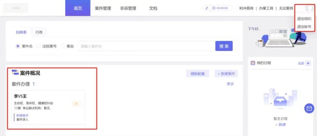 为解决律师转所时,案件数据迁移不便这一行业痛点,“天工”系统2.0首创个人、团队、律所三种模式的自由切换功能。用户默认使用个人模式。当用户邀请其他用户协办案件,便成为团队模式。当用户加入律所,便切换为律所模式。
