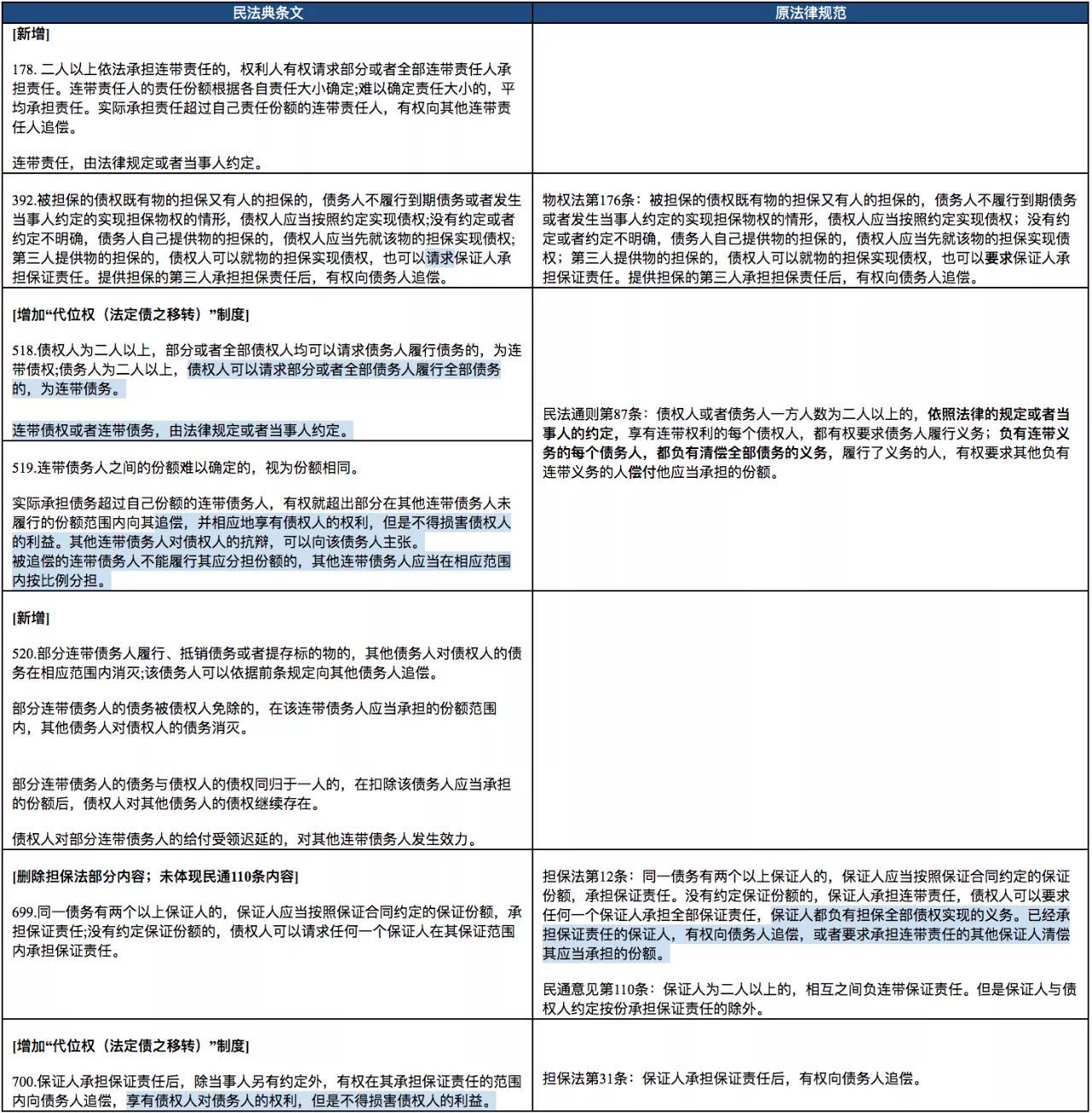 一、民法典有关“连带债务”“担保人求偿权”规范的增改变化一览