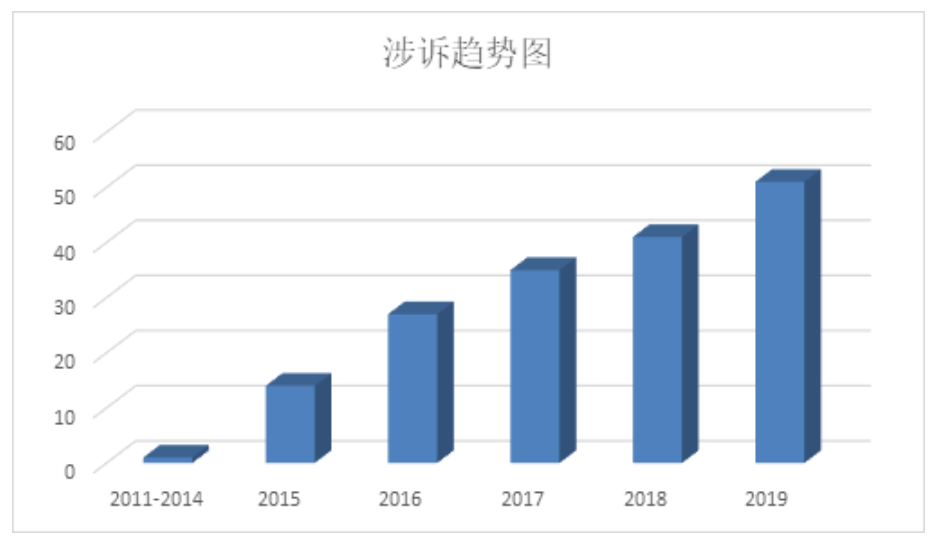 为全面呈现新能源发电行业的涉诉情况,除前述样本数据外,我们在此表中加入2011年至2014年的数据作为对比。从图表中可以看出,随着2013年国家电价补贴政策的实施,新能源发电项目建设规模的不断壮大,纠纷也随之增多,此后,受2016年的“6.30”政策影响,2017年起案件数量增长迅速,并呈逐年上升趋势。