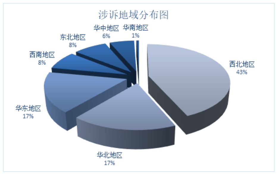 由上图可知,有关新能源纠纷的案件的一个特点是区域分布特征较为明显。西北地区因丰富的风能和太阳能资源的先天优势,并依托国家产业政策扶持,在新能源发电的发展大潮中,成为重要的的能源战略供给基地,其光伏装机容量一直占全国首位。[3]因此,西北地区有关新能源发电纠纷的占比高达43.5%,位居各地区首位。