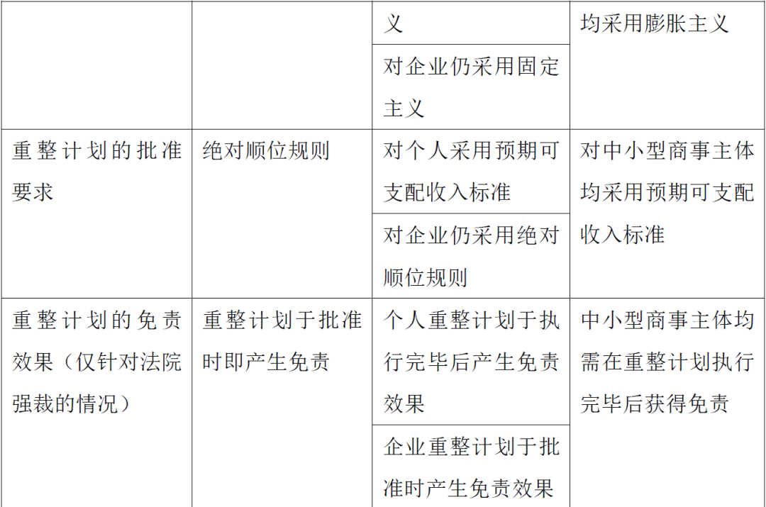 总之,在绝对顺位规则之下,中小企业的原出资人几乎不可能保留其出资权益和相应的经营权,而重整成功又离不开原出资人的参与,这对于权属本就缺乏流动性的中小企业而言,不啻为自缚手脚。反过来说,《企业破产法》尚未将各类型的组织形式纳入其调整范围,可能正是囿于绝对顺位规则与个体企业组织形式的不适配性,该规则对重整计划批准以及执行效果的深远影响甚或阻碍了破产制度的整体发展。