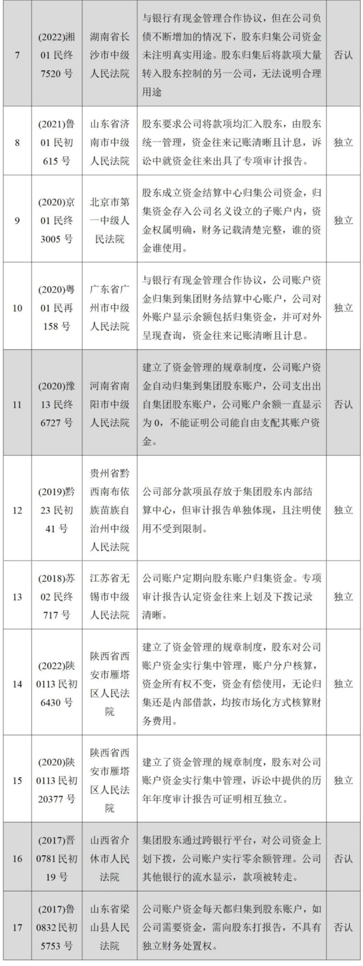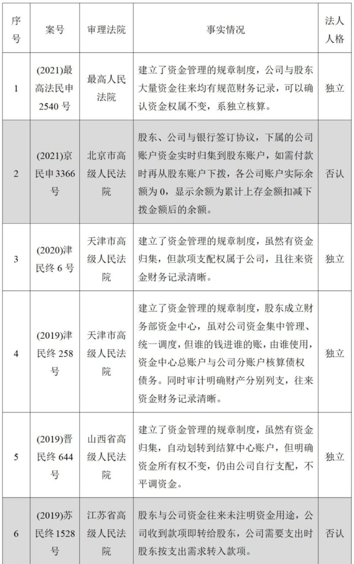 通过分析实践中的做法和法院的裁判逻辑,我们总结资金归集是否构成财务混同,进而否认法人人格,关涉因素和情形主要如下: