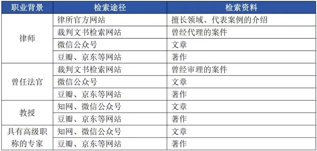 基于笔者办理仲裁案件的经验,建议可以通过如下方式就不同职业背景仲裁员的专业水平、观点倾向进行检索: