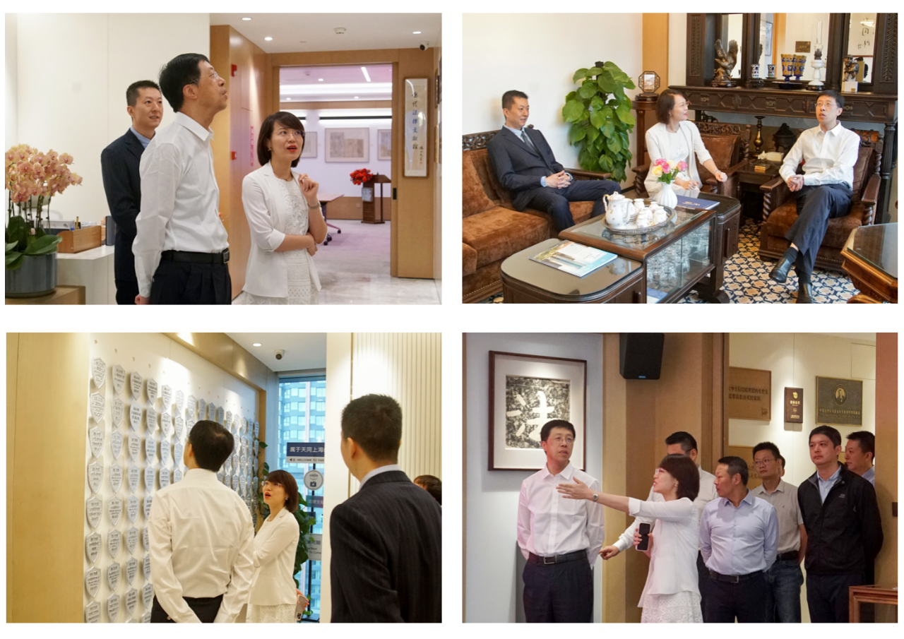 座谈会前,吴坚勇局长一行在徐菲繁主任的陪同下,参观了上海天同办公室,了解律所的工作环境。徐菲繁主任将上海天同办公室典藏的大量明清时代出土的神兽、法典古籍、法律文书、古典家具等一一做了介绍。吴坚勇局长肯定了上海天同在法律文化研究与积累上的努力与贡献。