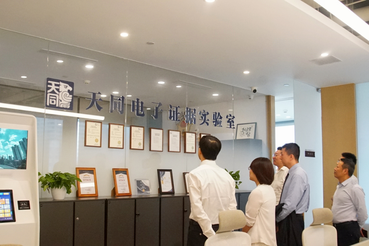 徐菲繁主任向各位领导介绍了上海天同电子证据实验室。吴坚勇局长详细了解了电子证据实验室的作业定位、人员架构、服务范围以及资质认证等。邹晓晨律师对吴坚勇局长的疑问作了充分解答,并表示,天同电子证据实验室作为律师行业的基础产品,是经过CNAS认证的、能支持民商刑知各类型案件在电子取证方面的实验室,不仅面向天同内部提供技术支持,同时也向全行业开放。