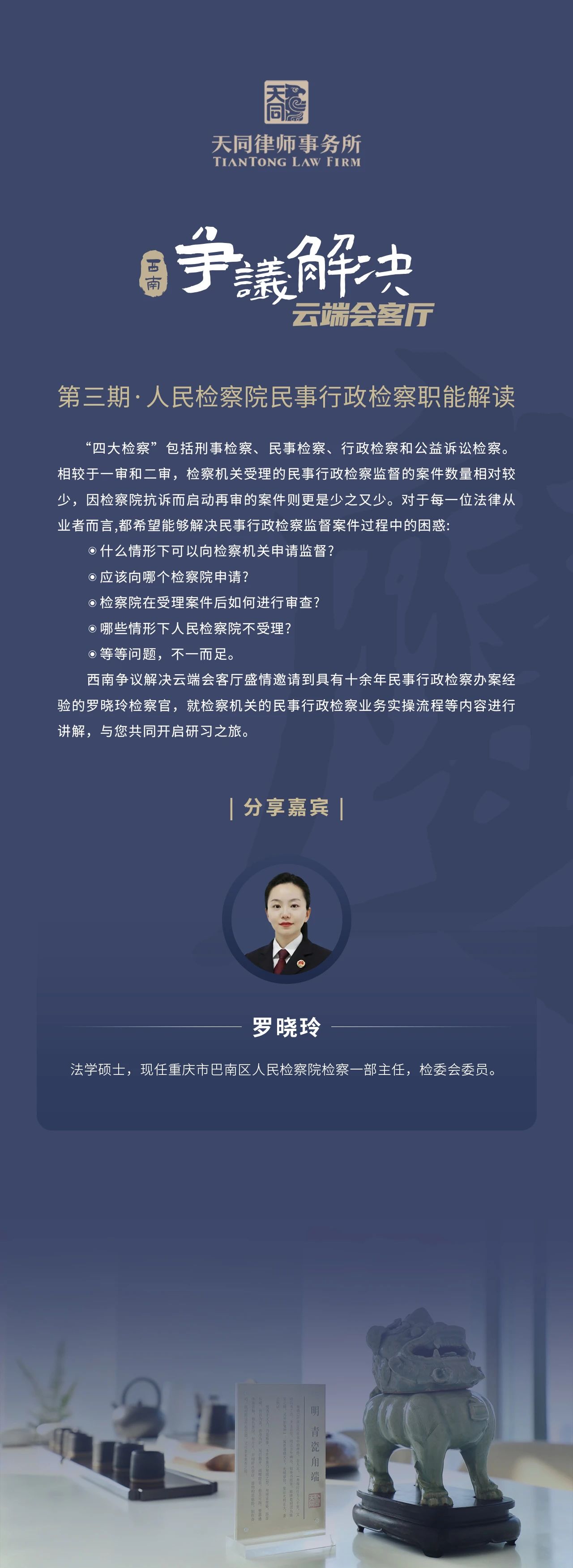 邀请函•重庆|“西南争议解决云端会客厅”第三期:人民检察院民事行政检察职能解读